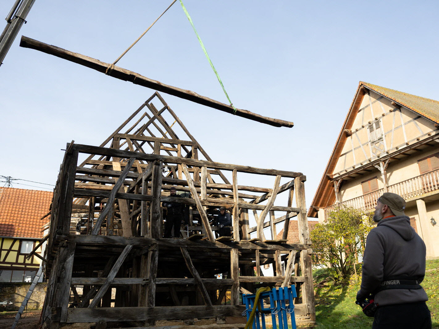 La plus ancienne maison d’Ohlungen datant de 1669, située rue Sandbuhl, vient d’être démontée, ce mercredi 12 novembre, par une entreprise de charpentiers sous le regard avisé de l’Association pour la sauvegarde de la maison alsacienne. Un repreneur passionné reconstruira la maison à l’identique, avec les colombages déjà existants, sur un terrain privé d’ici 2026 à La Wantzenau.